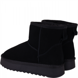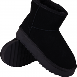 Cholewka wykonana jest z naturalnej skóry zamszowej, która prezentuje się elegancko i zapewnia trwałość na długi czas. Klasyczny czarny kolor sprawia, że buty doskonale pasują do wielu zimowych stylizacji.