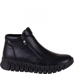 Czarne botki FILIPPO z okrągłym noskiem i tęgością G to praktyczny wybór do pracy, na spacery i codzienne wyjścia. Solidna podeszwa z tworzywa sztucznego gwarantuje trwałość i bezpieczeństwo użytkowania.