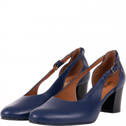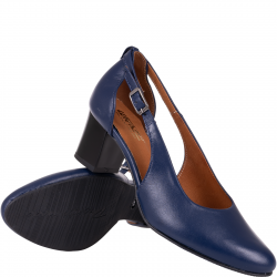Granatowe czółenka skórzane z paskiem Wielbut 555/G na słupku